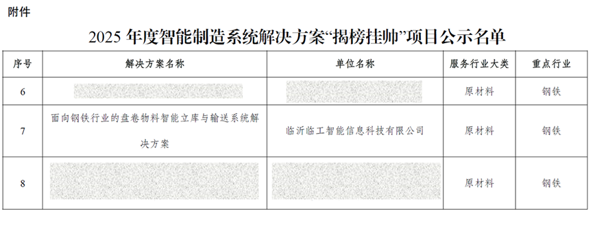 近日,工业和信息化部、市场监管总局联合公布2025年度智能制造系统解决方案“揭榜挂帅”项目名录。临工智科凭借自主知识产权的《面向钢铁行业的盘卷物料智能立库与输送系统解决方案》成功上榜,更成为自“揭榜挂帅”评选以来,该领域唯一入选的智能制造解决方案供应商,彰显了“临工智造”在细分领域的绝对领先实力!